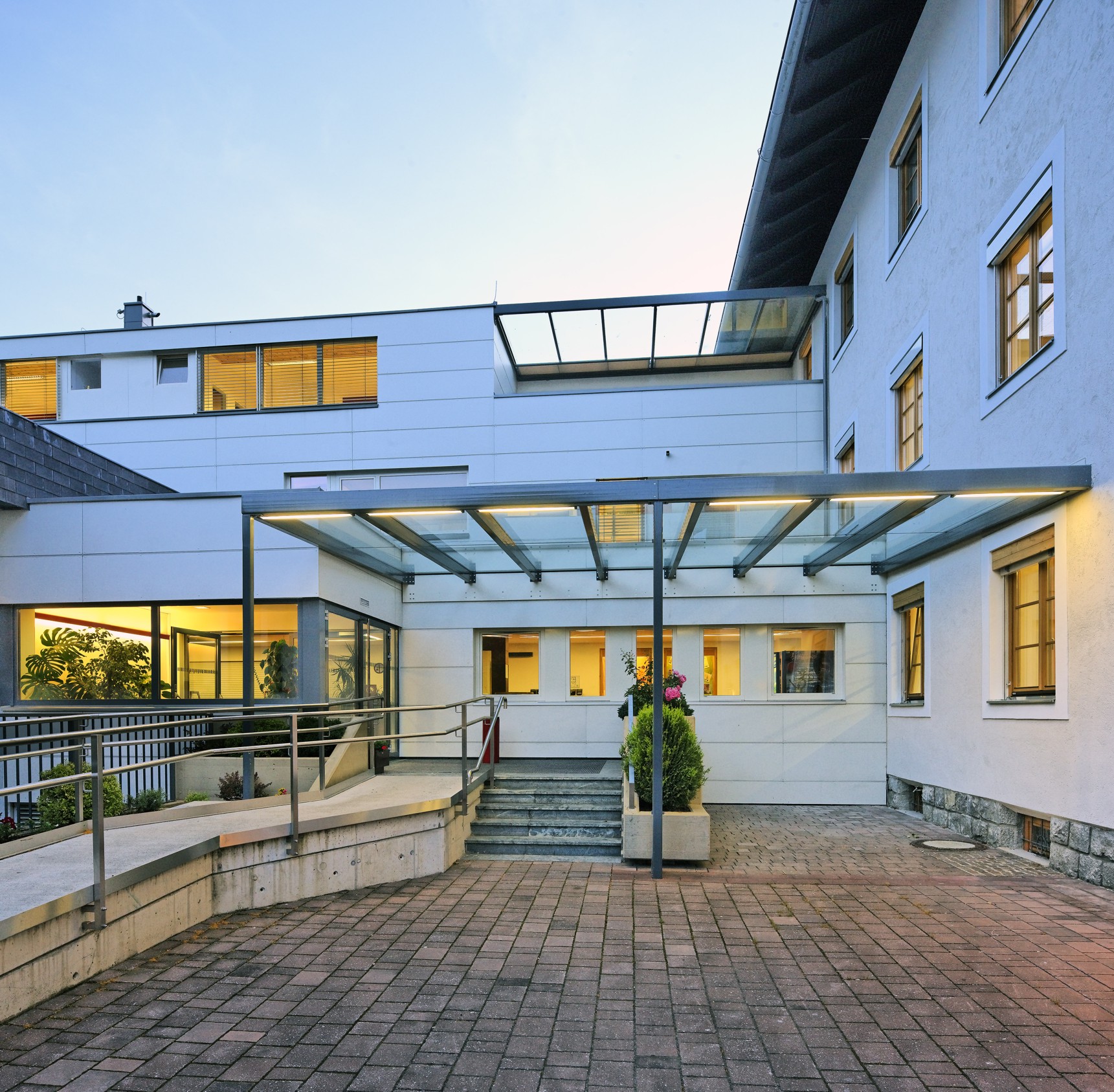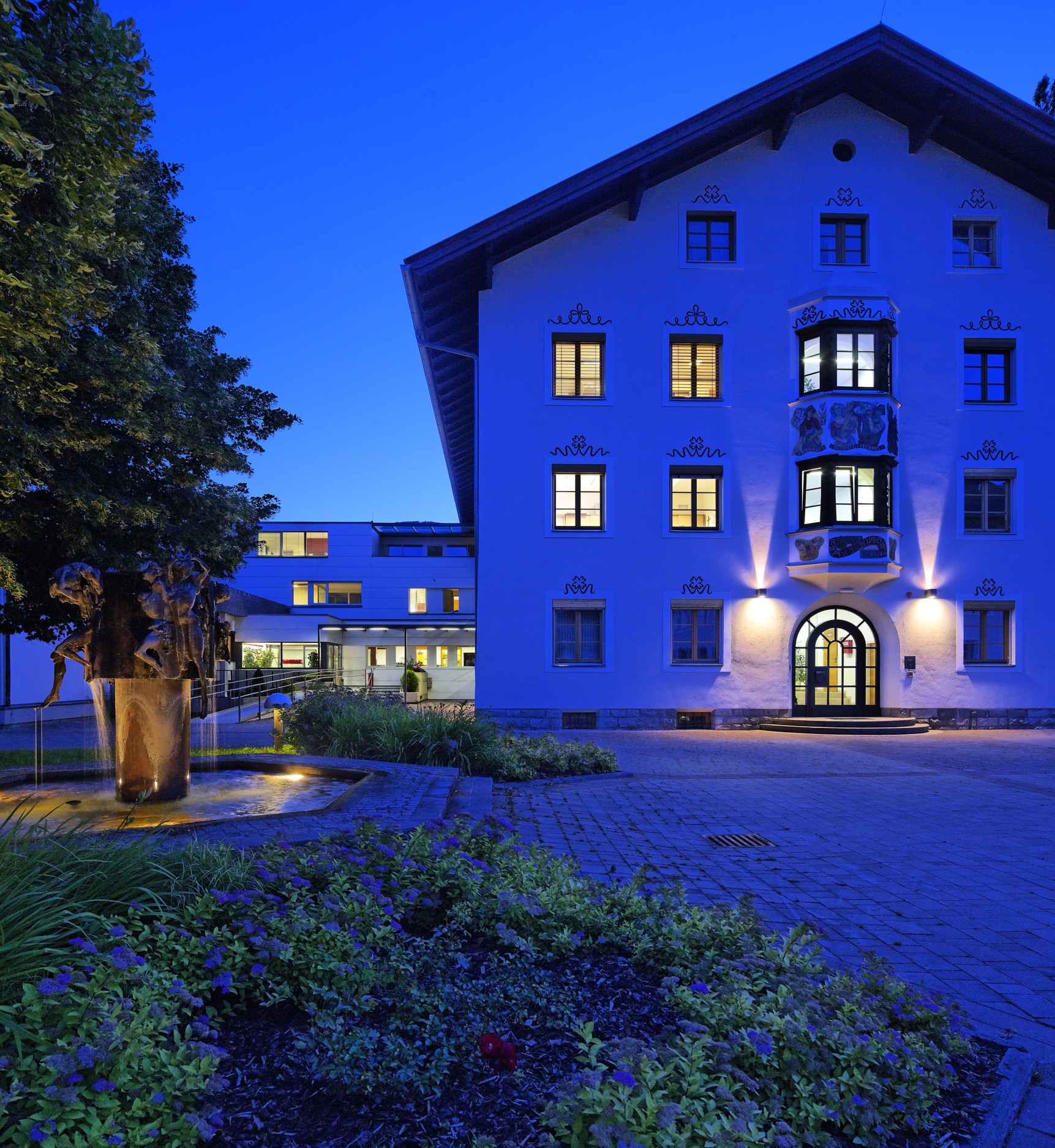 Das in den Nachkriegsjahren entstandene Gebäude war in klarer einfacher Struktur sowie Materialwahl erbaut worden. Stein, Beton und Holz sind die tragenden Elemente des Körpers, Verputz dessen Oberfläche. Ziel der planerischen überlegung war daher das Erscheinungsbild des Hauses möglichst zu belassen. So wurde die Fassade des Hauptgebäudes mit neuen Lärchenholzfenstern sowie mit der ursprünglichen Groben Putzstruktur versehen. Lediglich das neuere Quergebäude erhielt eine „moderne“ helle Eternitfassade mit notwendiger Thermischer Dämmhaut. Das Innere wurde dem aktuellen Technischen Stand angepasst, in sämtlichen Geschossen wurden neue Sanitäreinheiten erstellt, zur barrierefreien Erschließung eine Aufzugsanlage eingesetzt.